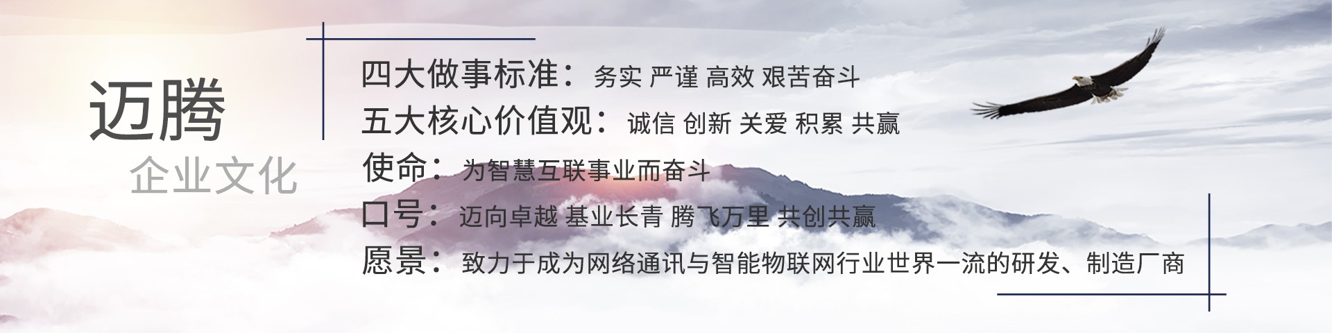 深圳市邁騰電子有限公司(簡稱邁騰),成立于2008年2月,是一家專注于網(wǎng)絡(luò)通訊與物聯(lián)網(wǎng)產(chǎn)品開發(fā)、生產(chǎn)、銷售及服務(wù)為一體的國家級高科技企業(yè)。目前是國、內(nèi)外網(wǎng)絡(luò)通訊與物聯(lián)網(wǎng)行業(yè)前列的研發(fā)、制造廠商。